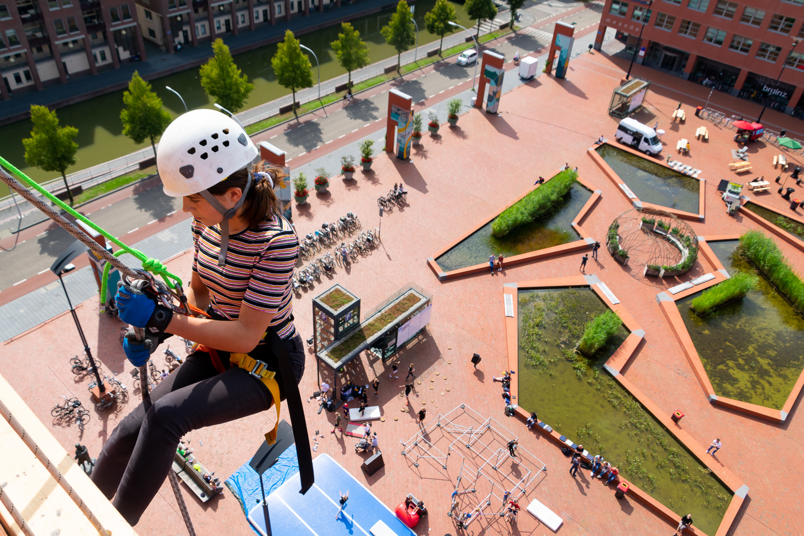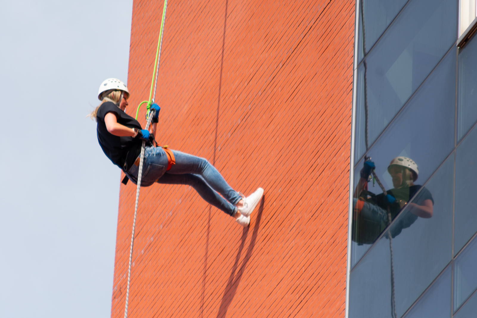 35 abseilers storten zich in diepe vanaf Stadskantoor Zwolle