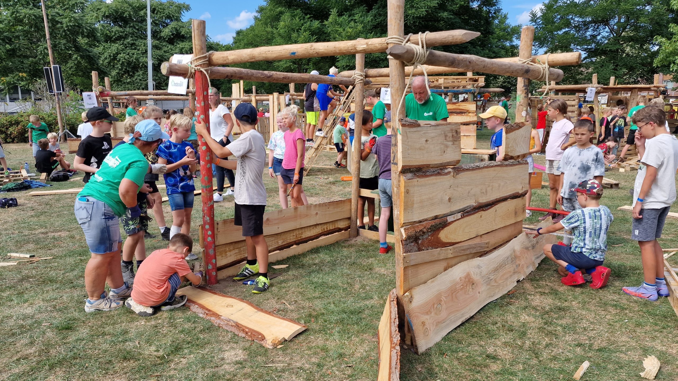 Zwolle – Na 2 jaar afwezigheid strijkt huttendorp Stadshagen eindelijk weer eens neer in het twistvlietpark. De organisatie, die bestaat uit Hinrie Zigteman, Andrei Vonk en Robin Mittelmeijer, konden niet wachten om dagelijks weer zo’n 350 kinderen te ontvangen. ‘Het oorverdovende getik van hamers klinkt als de mooiste muziek’ aldus Hinrie.