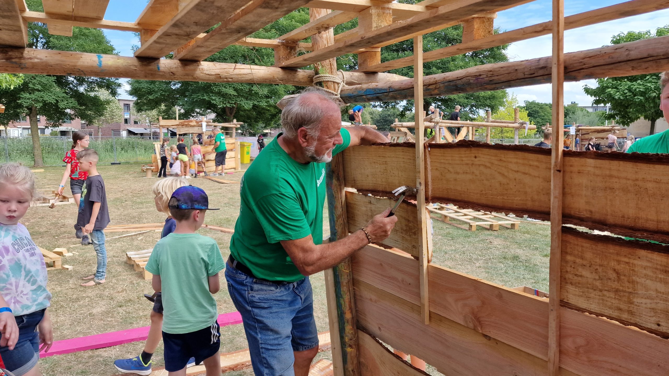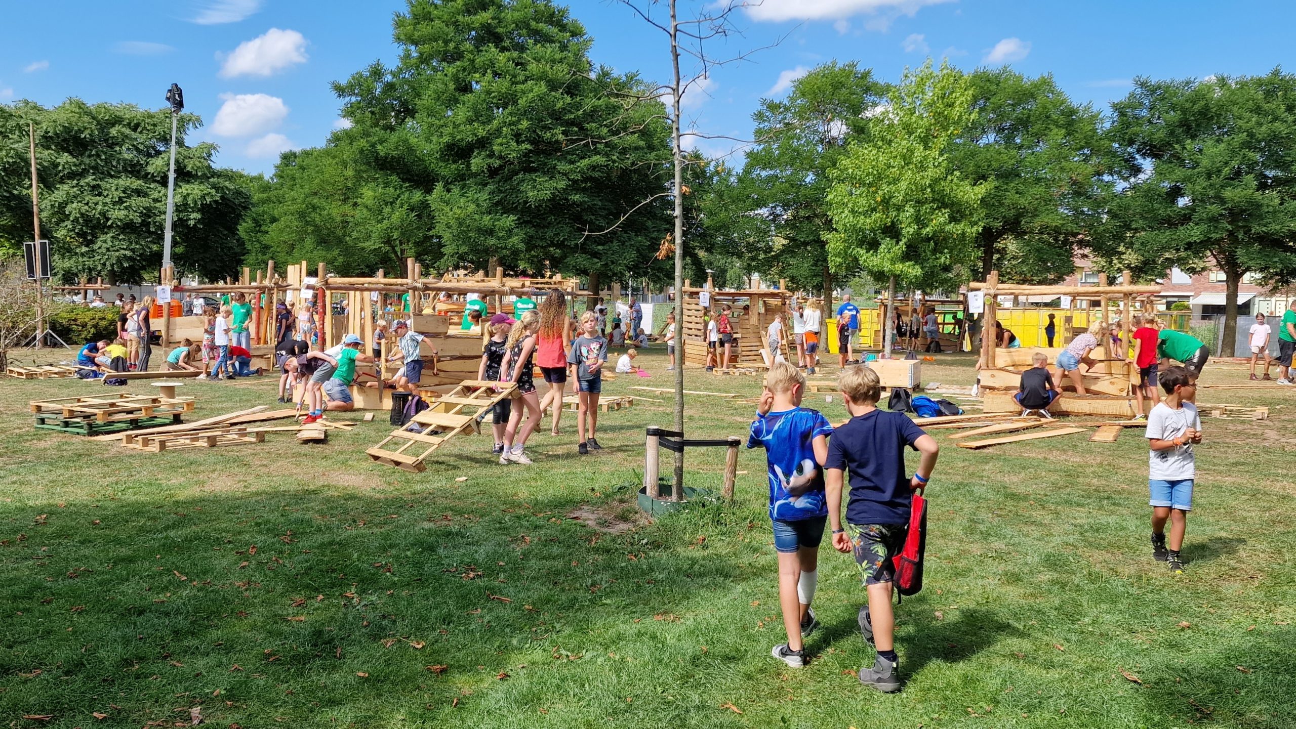 Andrei legt uit dat er dit jaar gekozen is voor het thema ‘reis door de tijd’. Ja wat is er dan ook toepasselijker na twee jaar afwezigheid. We hopen kinderen te inspireren met ons thema zo zouden wij natuurlijk erg graag hutten zien uit de prehistorie maar misschien ook wel uit de verre toekomst.