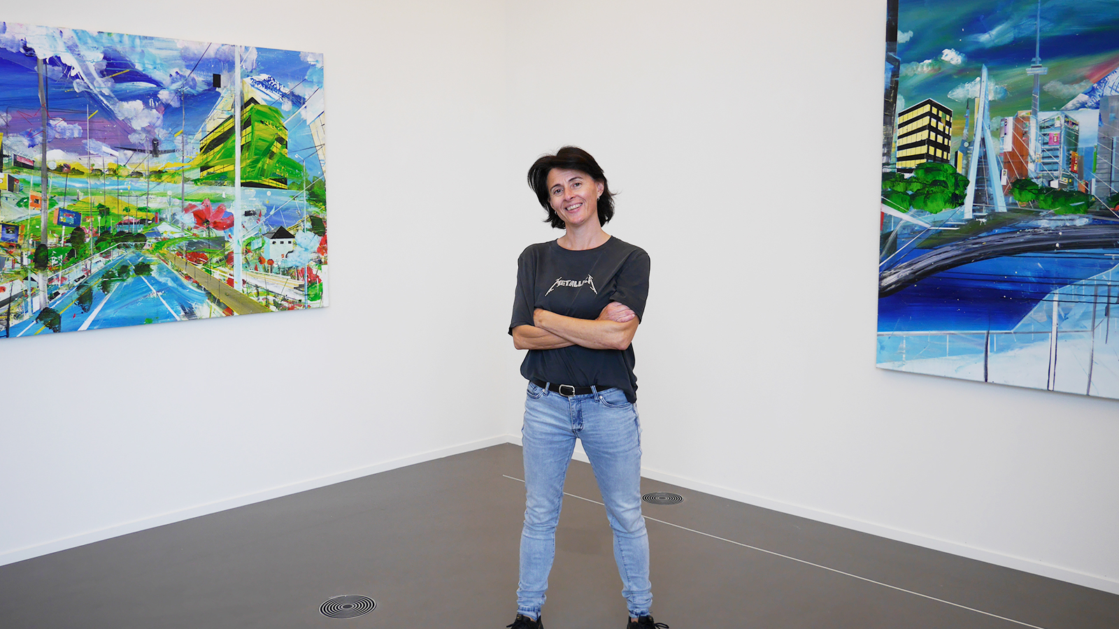 “Anneke creëert met de verf op haar kwast een prachtig sprookje op haar doeken. Het zijn kleurrijke schilderijen, met de steeds terugkerende kleur blauw. Nieuwe werelden met architectuur, bergen, het noorderlicht, spiegelbeeld en de, met elkaar verbonden, opbouwende bruggen.” vertelt Mariekus. “De bezoekers van De Fundatie spreken vol lof over Anneke: het verhaal in haar doeken is zo herkenbaar en vertrouwd. Deze expositie raakt mensen.” aldus Mariekus.
