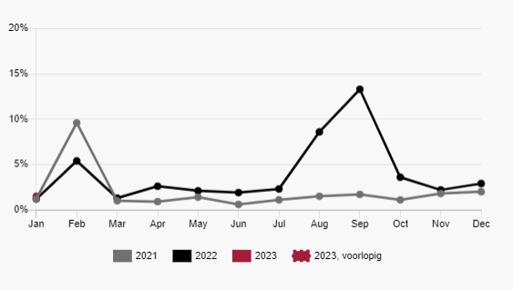 Als we kijken naar vertragingen dan zien we voor Zwolle dat vanaf augustus de dienstregeling minder betrouwbaar wordt met een grote uitschieter in september. In die maand komt slechts 85,5% van de treinen aan met een vertraging van minder dan 5 minuten.