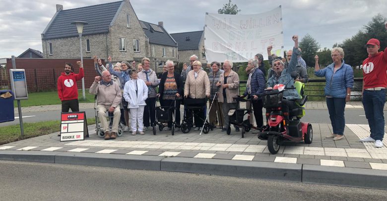 Zwolle – Dinsdagochtend stonden ruim twintig bewoners van zorgcomplex Het Hoge Huis in Stadshagen met vrijwilligers van de lokale SP in alle vroegte te wachten op de bus die niet meer bij hun halte stopt. Ze ontrolden een spandoek en riepen de provincie op hun oude bushalte in ere te herstellen.