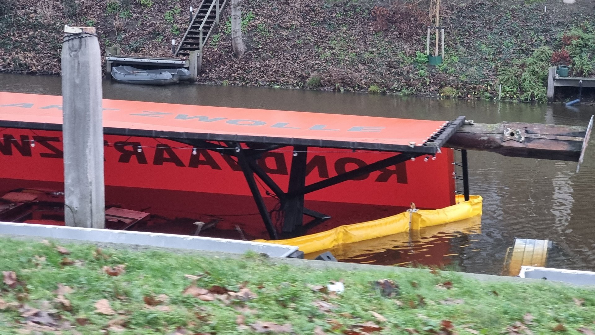 Ter plaatse bleek de boot van Rondvaart Zwolle, aan de Harm Smeengekade, scheef in het water te liggen. Waarschijnlijk is er water in het schip gekomen. Hierop is de brandweer gealarmeerd. Eigenlijk kon er weinig meer aan gedaan worden om de boot te redden. Om te voorkomen dat olie en dergelijke zich gingen verspreiden is een gele band rondom de boot gelegd.