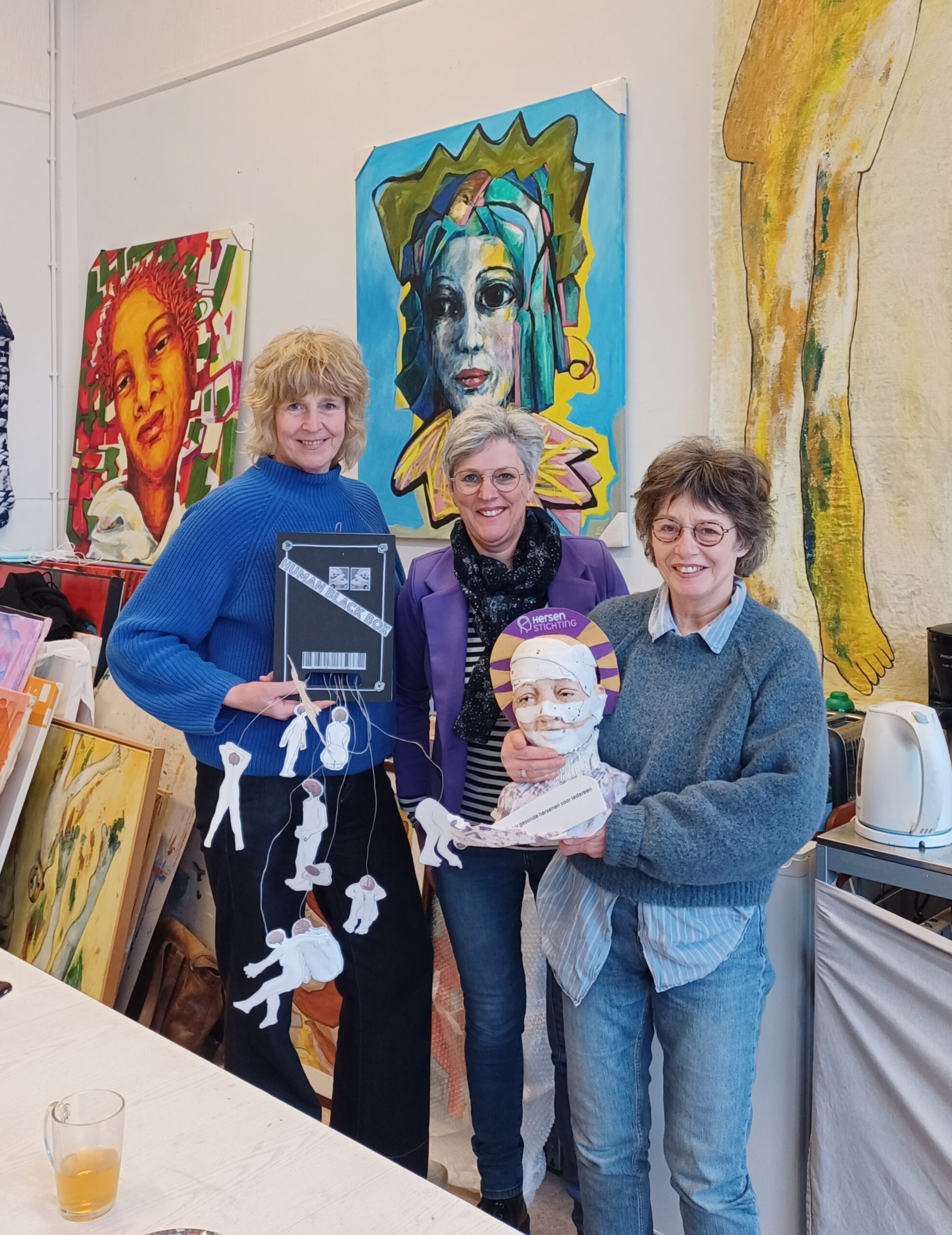 In de aanloop naar de collecteweek is er ook een verkoopexpositie gehouden in Het Langhuis in Zwolle. Maar liefst 26 kunstenaars hadden 30 kunstwerken gemaakt van afgeschreven collecteborden. Een groot deel daarvan is verkocht. Eline Achterhuis en Erica Hadjidakis hebben hun werk aan de Hersenstichting geschonken.