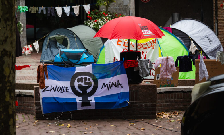 Dolle Mina’s slapen in tenten bij stadhuis Zwolle: “Liever een bed dan een begrafenis”