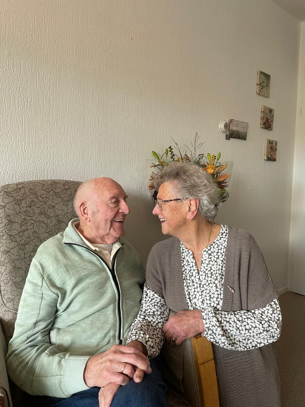 Een tip van Janny (86 jaar) en Dick (93 jaar) om zolang bij elkaar te blijven: Geven en nemen, en lekker eten!