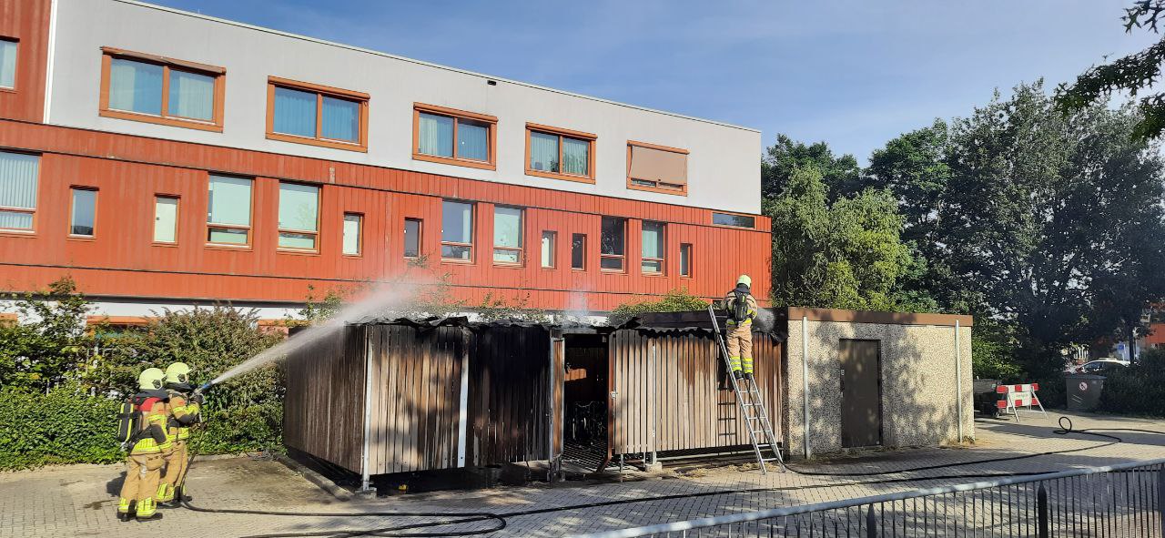 Ter plaatse bleek een fietsenhok in brand te staan. De brandweer schaalde op naar middelbrand. Ondanks snel ingrijpen van de brandweer liep het fietsenhok forse schade op door de brand. Het fietsenhok stond tegen een stroomhuisje aan, deze liep lichte schade op. Een aantal fietsen die in het hok stonden raakten ook beschadigd.