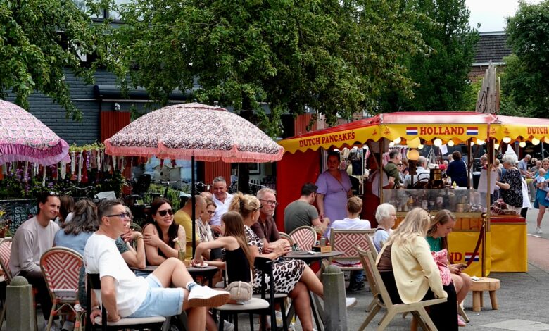 Bij de bekende poffertjeskraam was het een drukte van belang. Vele poffertjesliefhebbers ploften neer op het naastgelegen terras. “Dat terras is eigenlijk van de lunchroom naast ons,” vertelt de poffertjesdame terwijl ze beslag uitsmeert. “Maar mensen mogen daar gerust onze poffertjes eten. Ik zeg dan altijd: ‘Neem dan ook even een drankje bij de buurman.”