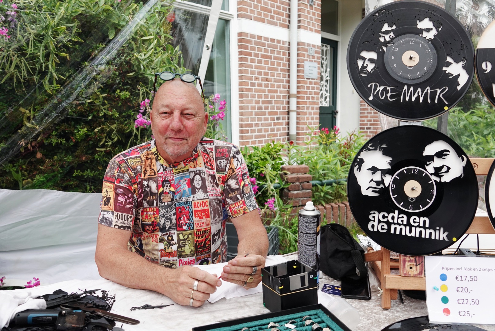 Ook opvallend: een kraam met handgemaakte klokken van oude lp’s. De heer en dame achter de kraam laten zien hoe ze met een laser uitgesneden platen verder bewerken tot 2CV’s, andere klassieke auto’s, popbands en beroemde filmfiguren.