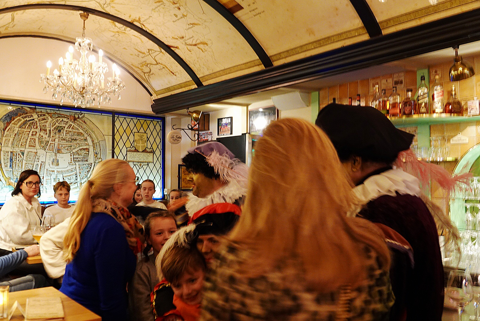 Tijdens de Gouden Sint & Pietentocht trok de groep verder langs verschillende Zwolse cafés waar het carnaval ieder jaar volop wordt gevierd. De tocht begon om 14.33 uur bij Lunchroom Blocks. Vervolgens ging het om 15.44 uur door naar Het Wijnhuis, waar de groep uitgebreid poseerde voor foto’s. Om 16.44 uur werd ’t Swolsch Café aangedaan, gevolgd door Hessel’s Café om 18.33 uur. De feestelijke tocht eindigde om 19.11 uur bij Café de Pul, waar Men in Music later op de avond speelde. Ja en als je je dan afvraagt, wat zijn dat allemaal voor rare tijden? Dat heeft natuurlijk alles te maken met het carnavalsgetal de elfde van de elfde.