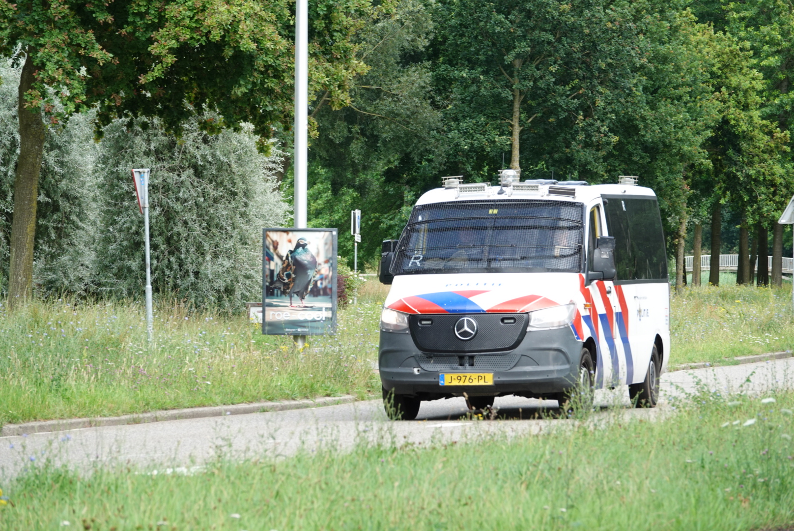 De weg de Hanekamp wordt afgesloten.Vanaf de kant van het Dominicanenklooster komt een groep met gezichtsbedekkende kleding. De politie spreekt ze er op aan.