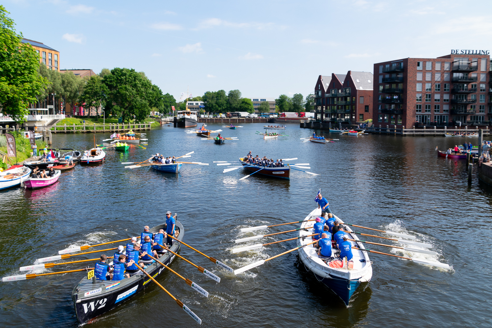 Sloepen uit heel Nederland kwamen ook dit jaar weer naar Zwolle. Geen rechttoe rechtaan roeiwedstrijd maar door de smalle grachten van Zwolle. Lastig zijn de grachten wel, de haakse bochten , smalle passages en de bruggen halen de vaart er soms even uit. Maar dat is meer dan goed te maken op het rechte stuk op het Zwarte Water richting Stadshagen. Net voorbij de Mastenbroek keerden de sloepen weer terug richting de binnenstad. De sfeer en de ambiance was dit jaar met de vele deelnemers weer geweldig.