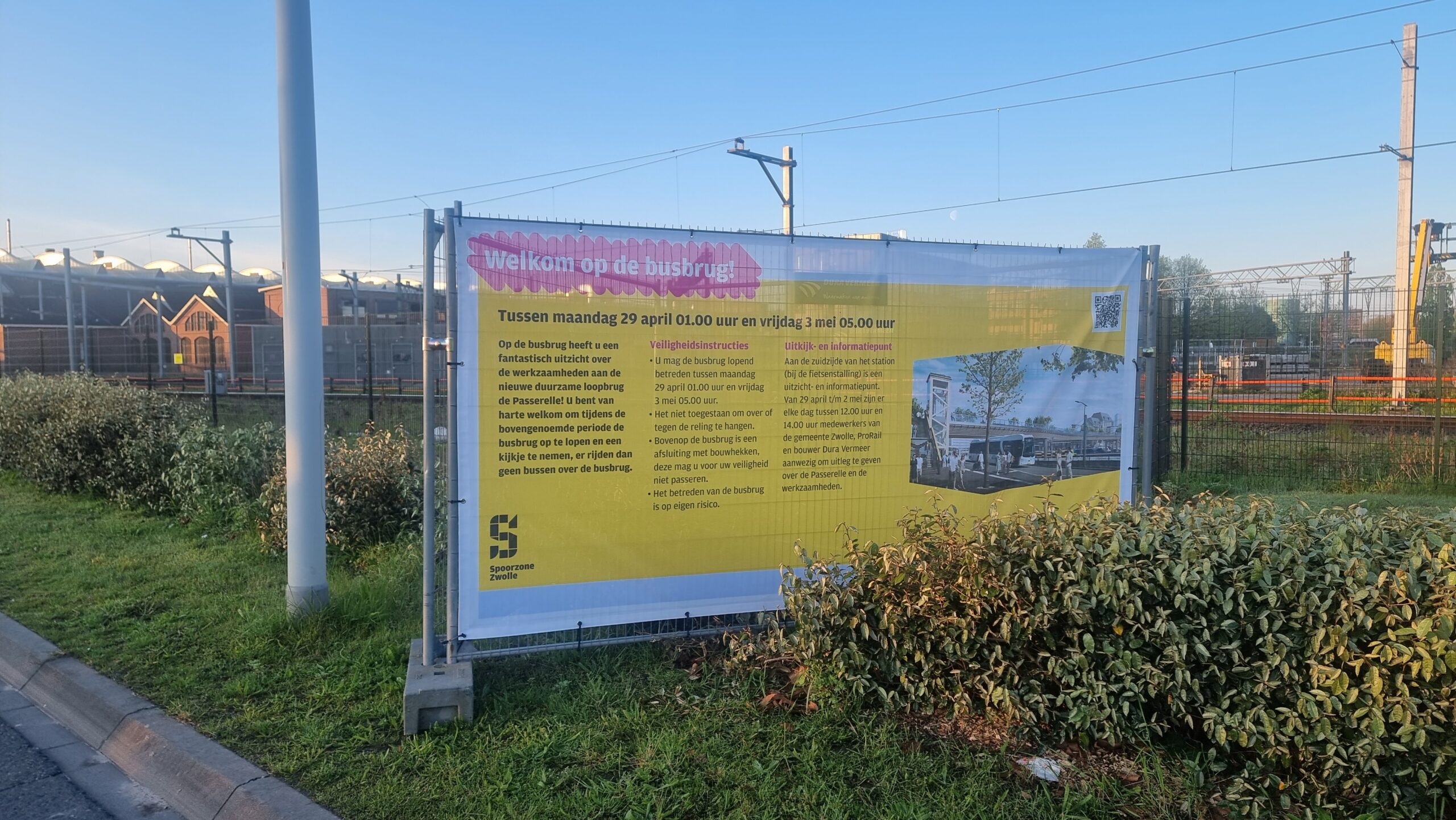 Zwolle- Je denkt: ‘Kan dat wel? Mag dat wel? Maar het is toch echt zo. De busbrug is vanaf vandaag vijf dagen lang open voor voetgangers! Vanaf de kant van de Veerallee kun je de brug als voetganger oplopen. 5 dagen lang is de brug verboden terrein voor de bussen omdat even verderop de nieuwe voetgangersbrug wordt ingehesen over het spoor van Zwolle.