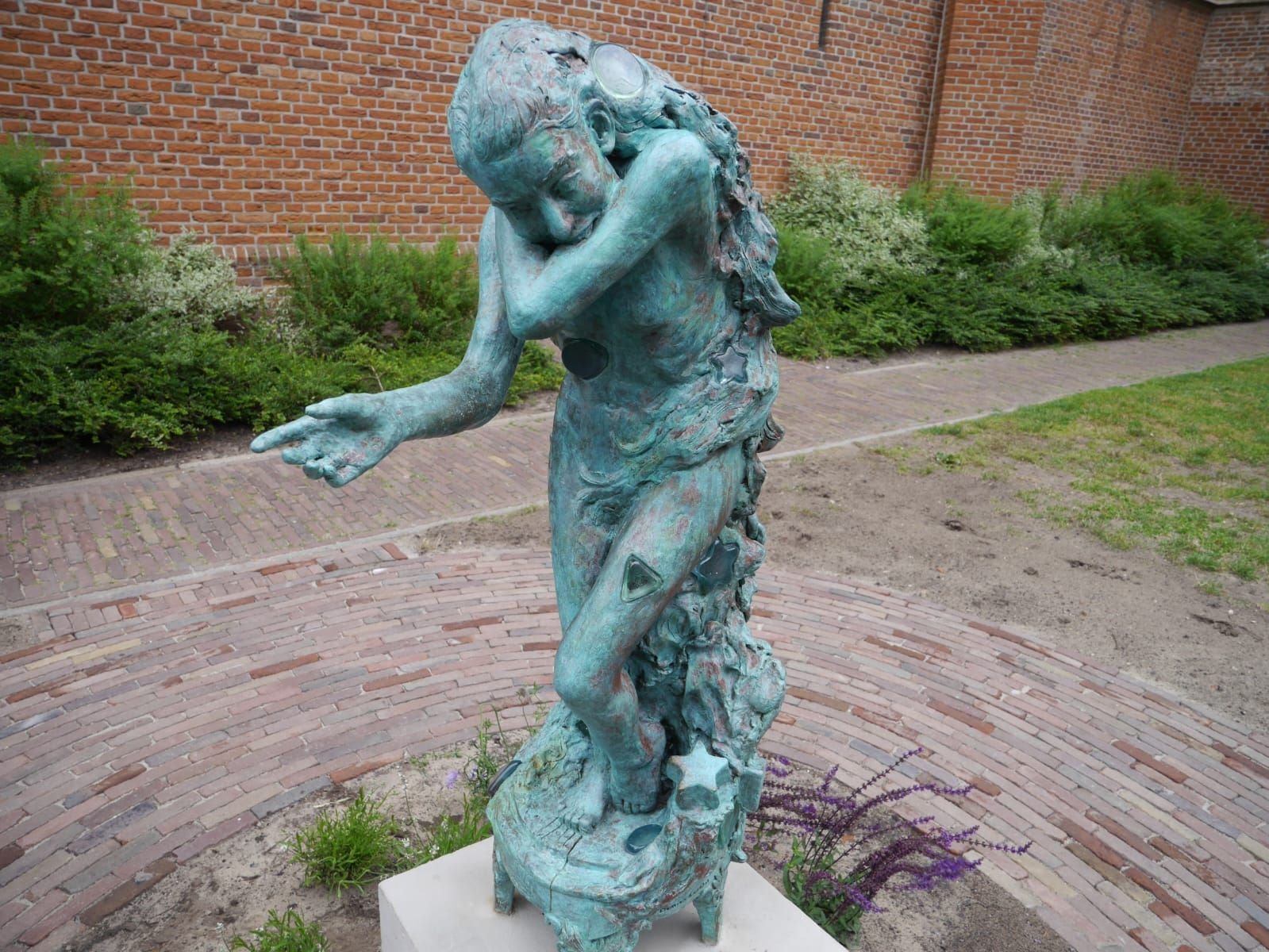 Zwolle – Vrijdagmiddag is het kunstwerk De Wilde Deerne feestelijk onthuld door wethouder Schuttenbeld en kunstenaar Damian Kapojos. Het bronzen beeld heeft een permanente plek aan de voet van de Peperbus en is gemaakt in nagedachtenis van het enige ‘wolfsmeisje’ van Nederland. Zij werd in 1717 op de Agnietenberg gevangen en bleek de verloren gewaande Anna Maria Jennaert uit Antwerpen, die op jonge leeftijd werd ontvoerd en in het wild opgroeide.