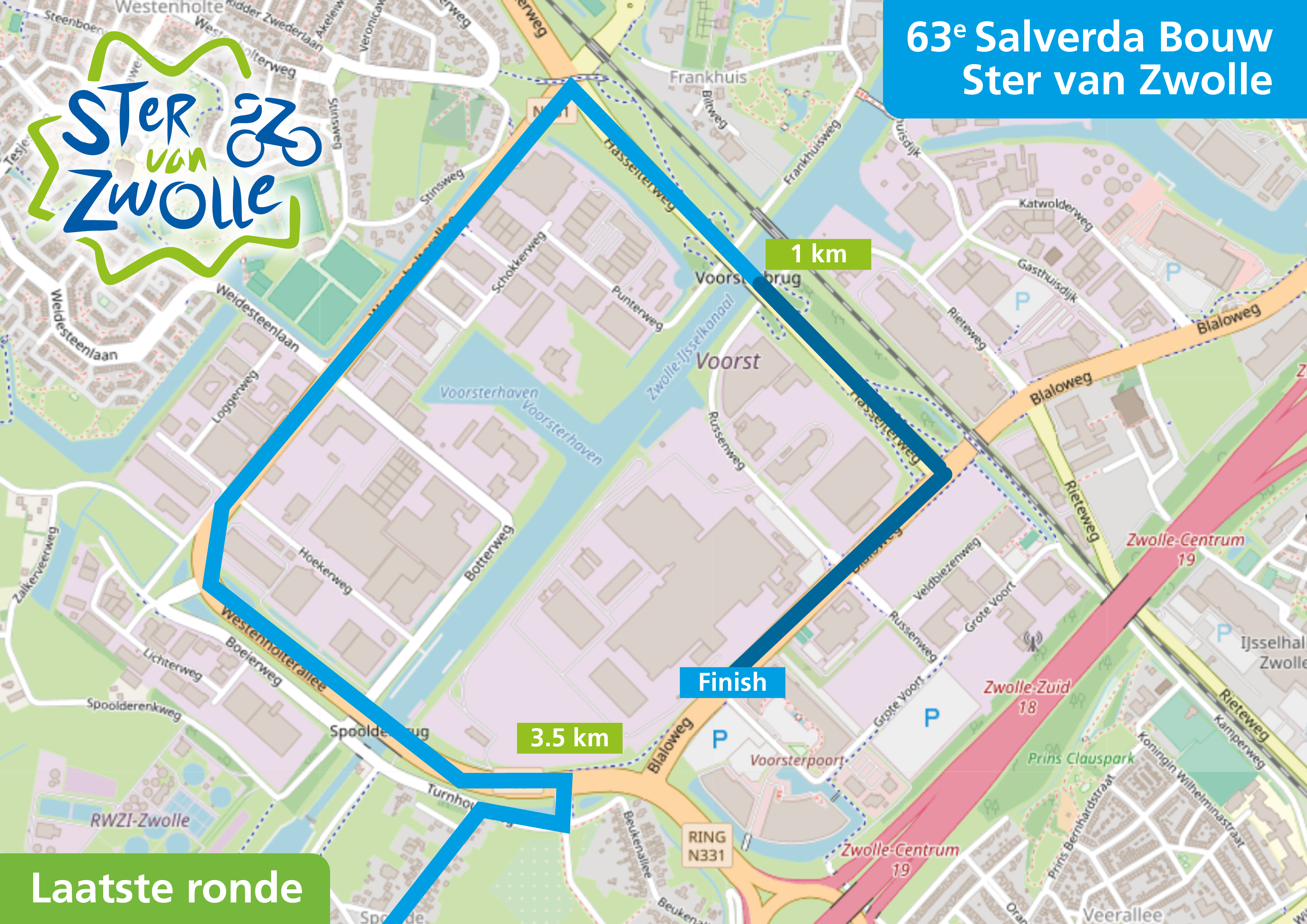 De renners komen straks vanaf de Oude IJsselbrug en rijden dan over de Westenholtenallee over de Spoolderbrug om vervolgens rechtsaf te slaan naar de Hasselterweg waar de Voorsterbrug wacht. Dan is het nog één keer rechtsaf voor de laatste paar honderd meter naar de finish op de Blaloweg. Door bij de meubelboulevard te finishen en om Industrieterrein Voorst te rijden, wil de organisatie de maakindustrie van Zwolle laten zien. Kroeze droomt alvast: “Zie je het al voor je? Een helikopter in de lucht, rondom de IJsseltoren met Scania en al die andere bedrijven in beeld met op de achtergrond de IJssel! Geweldig!”