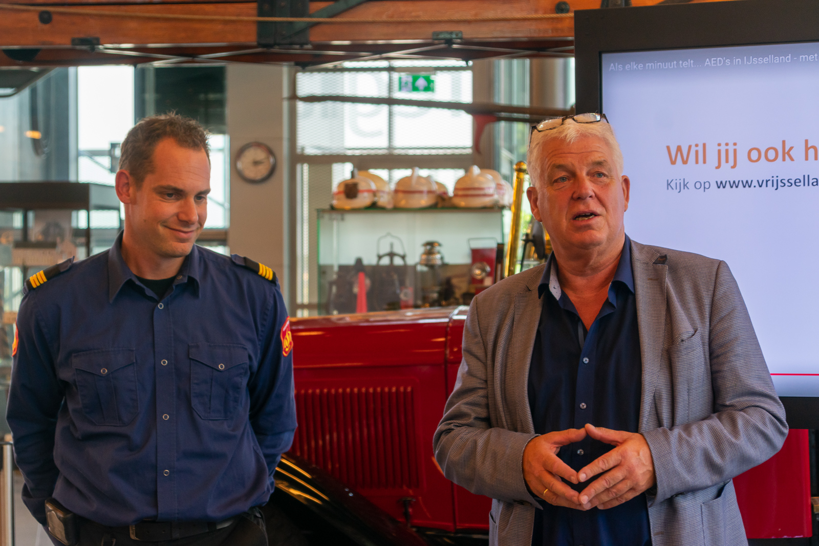 Zwolle – Donderdag onthulden Jeroen Altorf, ploegleider brandweer Zwolle, en Rinke Beverwijk, voorzitter Ondernemersclub Marslanden, de openbare AED bij de brandweerpost in Zwolle Zuid. Ook bij de kazerne in Zwolle Noord komt een AED, deze wordt volgende week geplaatst. Met het plaatsen van de AED’s wil Veiligheidsregio IJsselland de veiligheid vergroten en zelfredzaamheid van inwoners, instellingen, bedrijven en hun directe omgeving stimuleren.