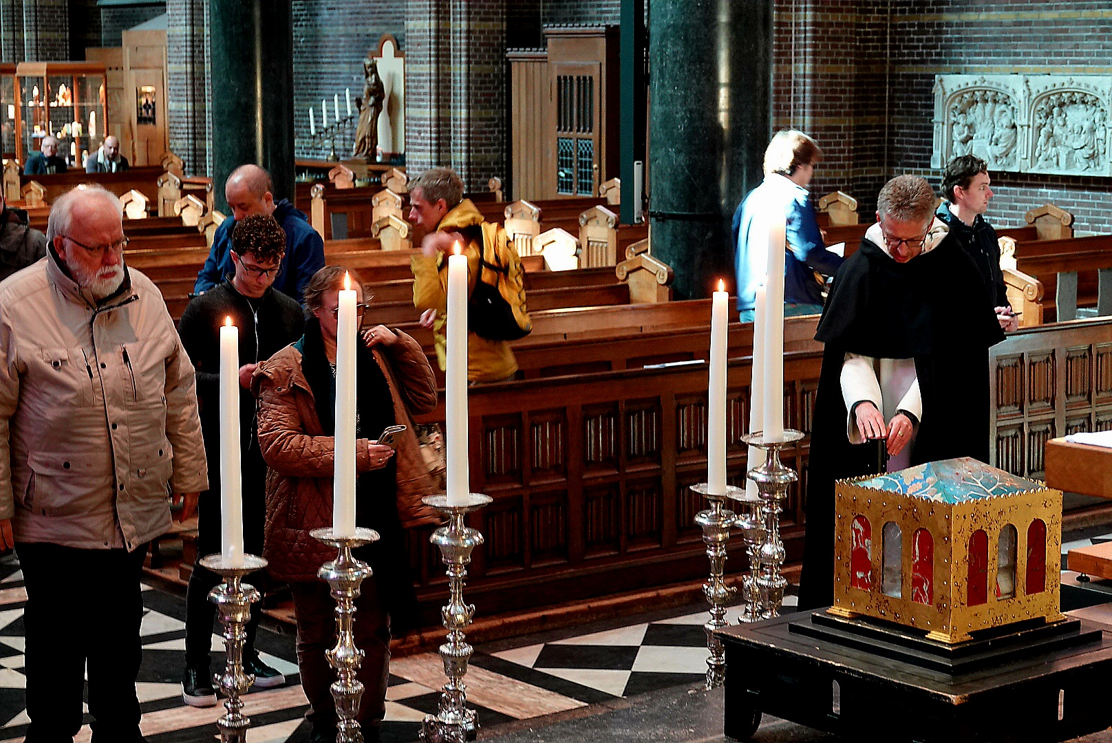 Zwolle – Sinds zaterdagochtend is in het Dominicanenklooster in Zwolle een bijzondere reliek van de middeleeuwse theoloog en filosoof Thomas van Aquino te bezichtigen. De komst van de reliek werd ingewijd met een plechtige mis, waarin deze centraal stond, omringd door brandende kaarsen. De voorganger sprak de hoop uit dat het gedachtegoed van Thomas van Aquino nog lange tijd een inspiratiebron zal blijven.