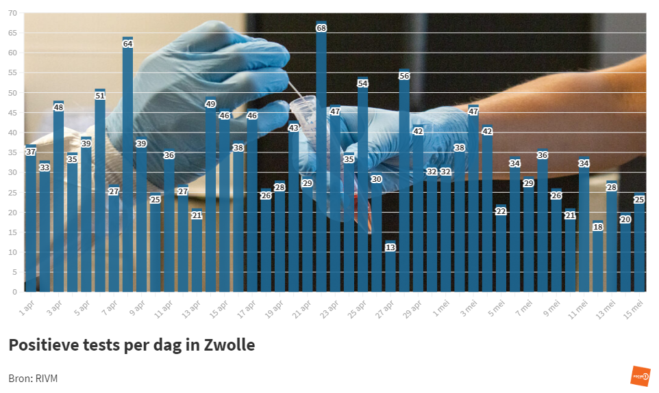 RIVM: ’25 coronabesmettingen in Zwolle; 1 sterfgeval in de regio’