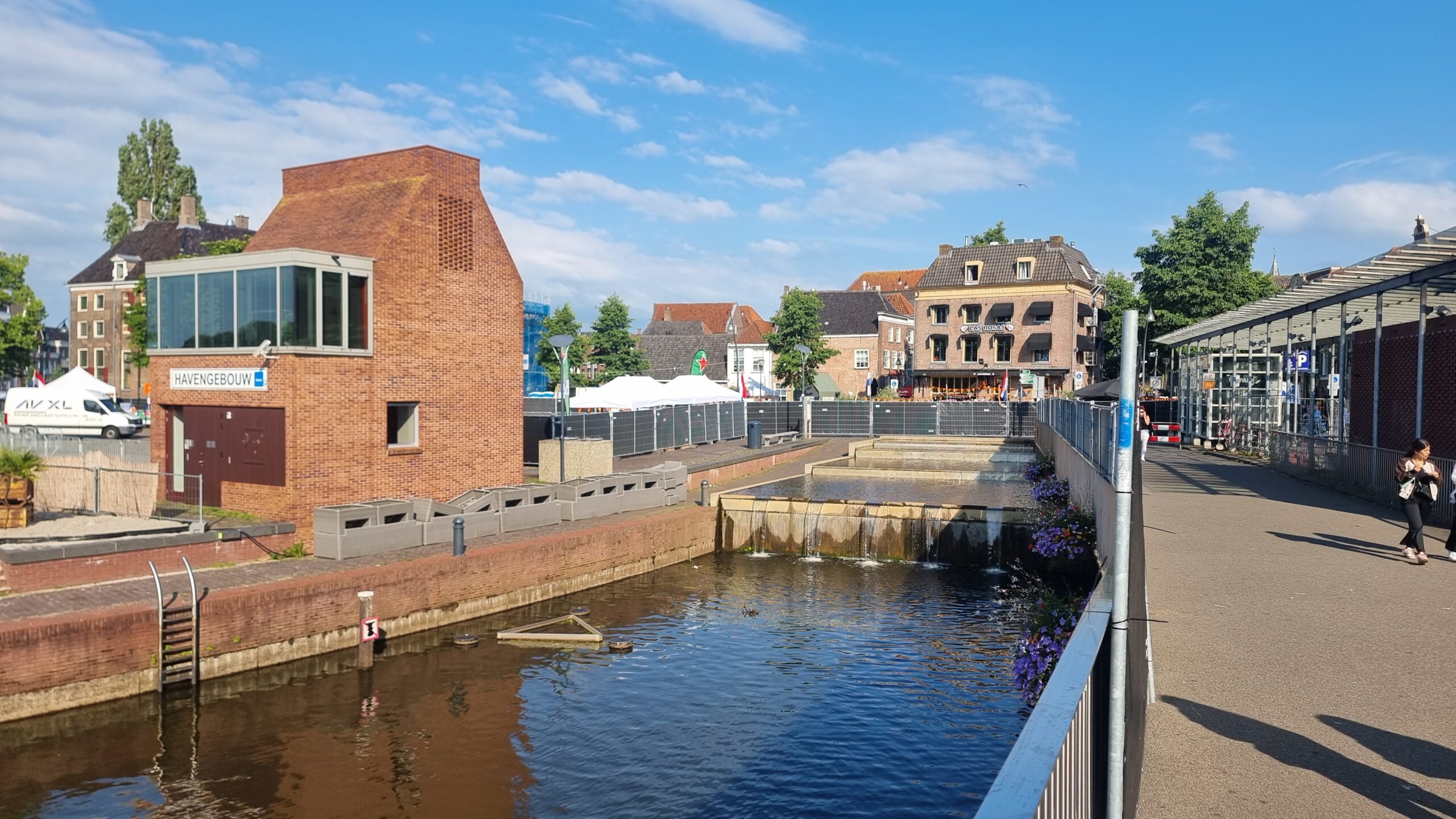 Tijdens de wedstrijd afgelopen zaterdag was de brug een populaire verzamelplek voor Oranjesupporters die niet meer het plein op konden. Ondanks de zwarte schermen die achter de trapwaterval op het plein stonden, kon men eenvoudig vanaf de brug naar het grote LED-scherm kijken. De brug stond dan ook aardig vol met publiek.