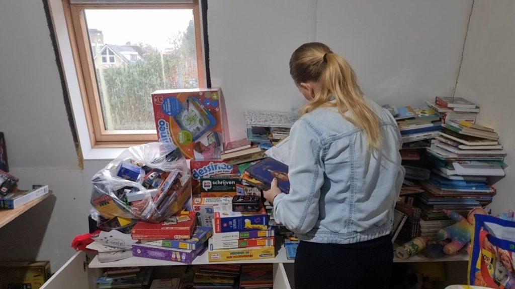 Op dit moment ligt het pakhuis helemaal vol met chocoladeletters, pepernoten, speelgoed en mooie boeken. Allemaal ingezameld en gegeven door bedrijven, instellingen en gewone Zwollenaren. En nu is het allemaal inpakken en uitzoeken wat er precies in de zak moet. De Sinterklaasactie krijgt daarvoor hulp van vele vrijwilligers.