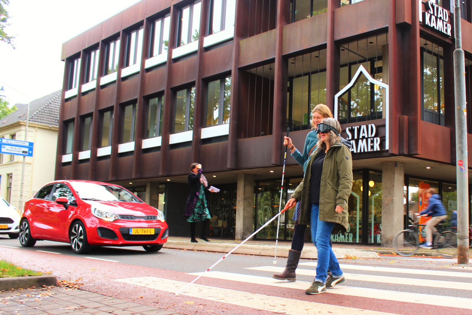 Wethouder William Dogger ervaarde maandagochtend zelf hoe het is om als blinde of slechtziende zich te moeten begeven door het verkeer. “Heel eng!, Je bent helemaal gedesoriënteerd. Je hoort alleen maar geluid van het verkeer”. Naast de wethouder kregen ook voorbijgangers de kans om geblindeerd met een geleidestok over te steken.