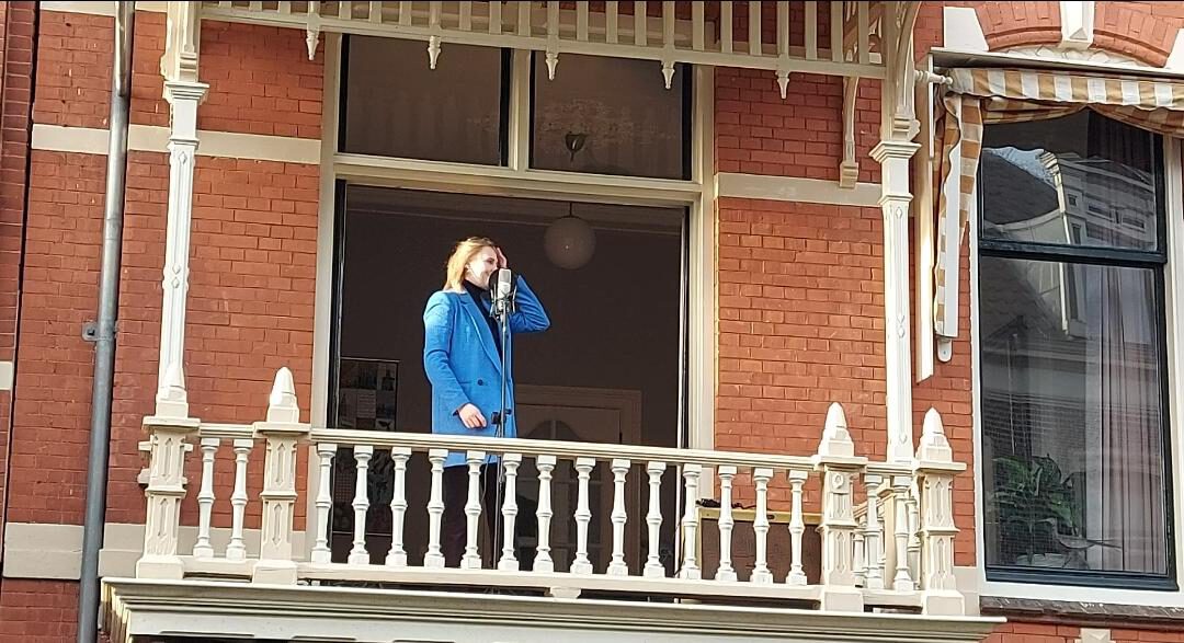 Zwolle – Zaterdagmiddag gaf zangeres Roza Herwig vanaf een balkon aan de Ter Pelkwijkstraat een miniconcert voor de buurt. Het concert is onderdeel van een reeks klassieke concerten vanaf het balkon. Een violist, een cellist, een trompettist en een saxofonist gingen Roza al voor. De balkonconcerten zijn een idee van klassieke muziekliefhebber Frans Landstra die graag een glimlach wil toveren op het gezicht van Zwollenaren in deze zware tijd.