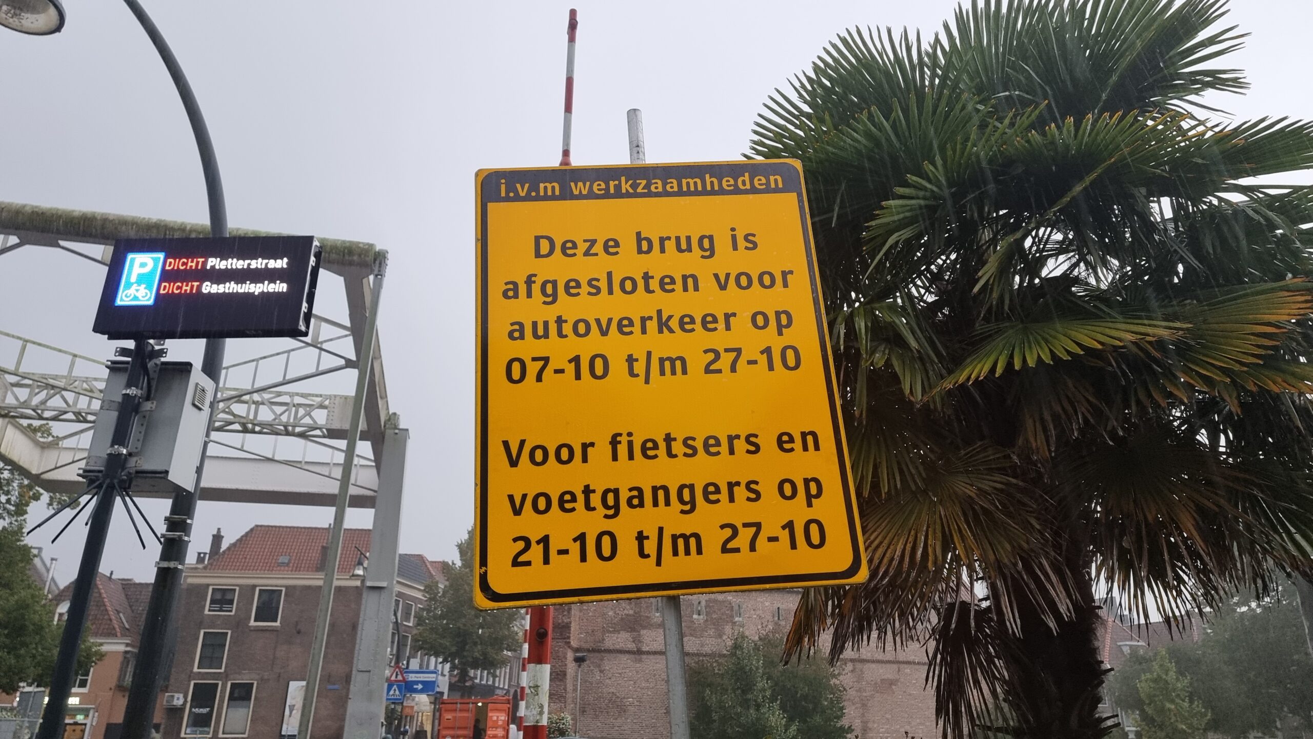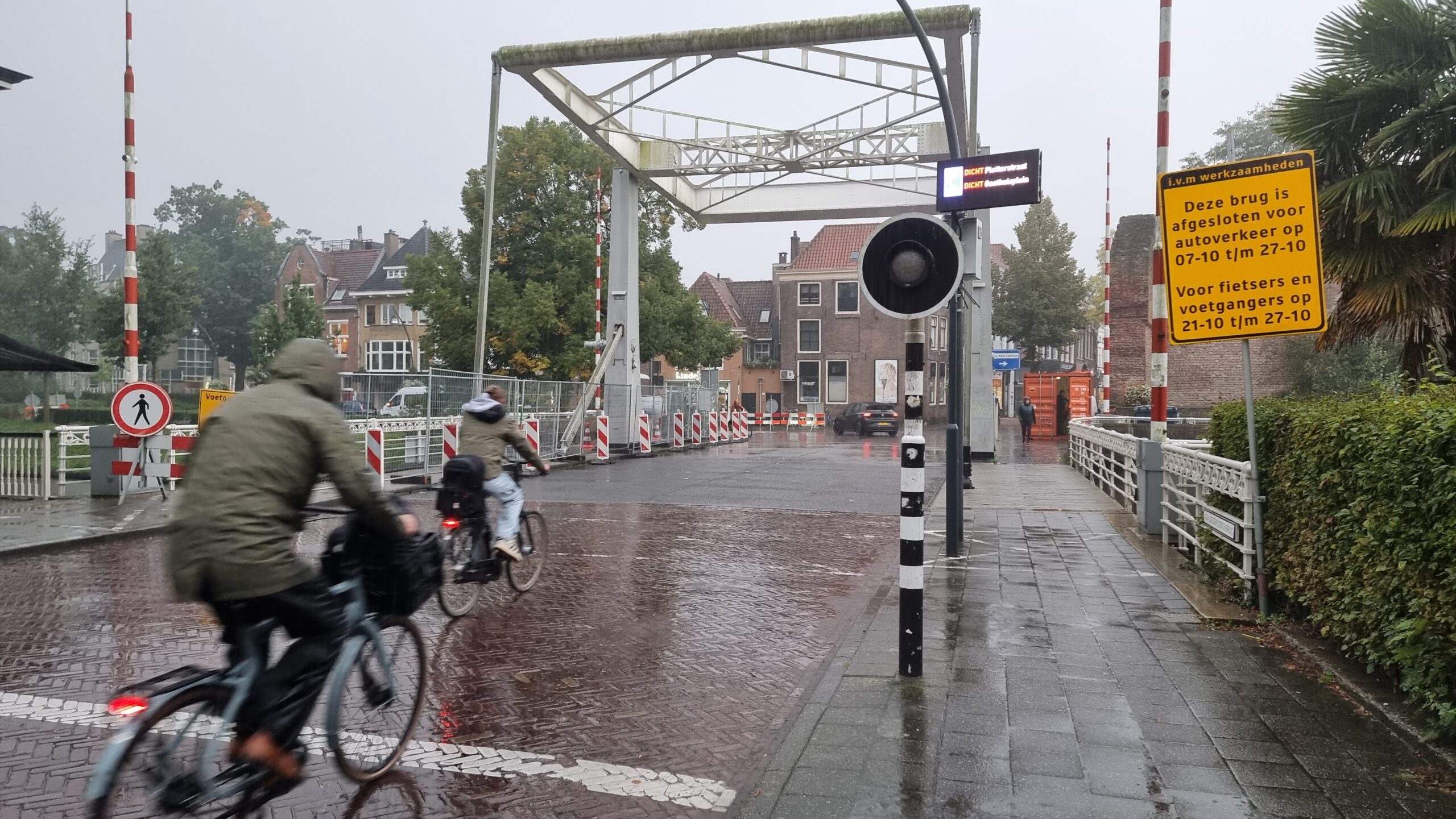 Fietsers en voetgangers kunnen over een tijdelijke fiets- en voetgangersbrug naast de Vispoortenbrug, behalve op de 4 bovengenoemde dagen in de weken van 18 november en 2 december.