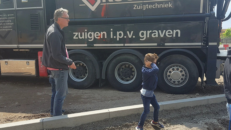 Vandaag verwelkomde Aannemingsbedrijf Van Gelder enkele honderden belangstellenden op de bouwplaats aan de Willemskade. Je kon hier zien wat een reconstructie inhoudt en kinderen konden hun eigen kunstwerk timmeren en kon je zitten in een echte op afstand bestuurbare vrachtwagen.