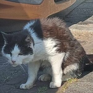 poes,wit/zwart,gevonden op 13-5 Voorstraat in Zwolle
