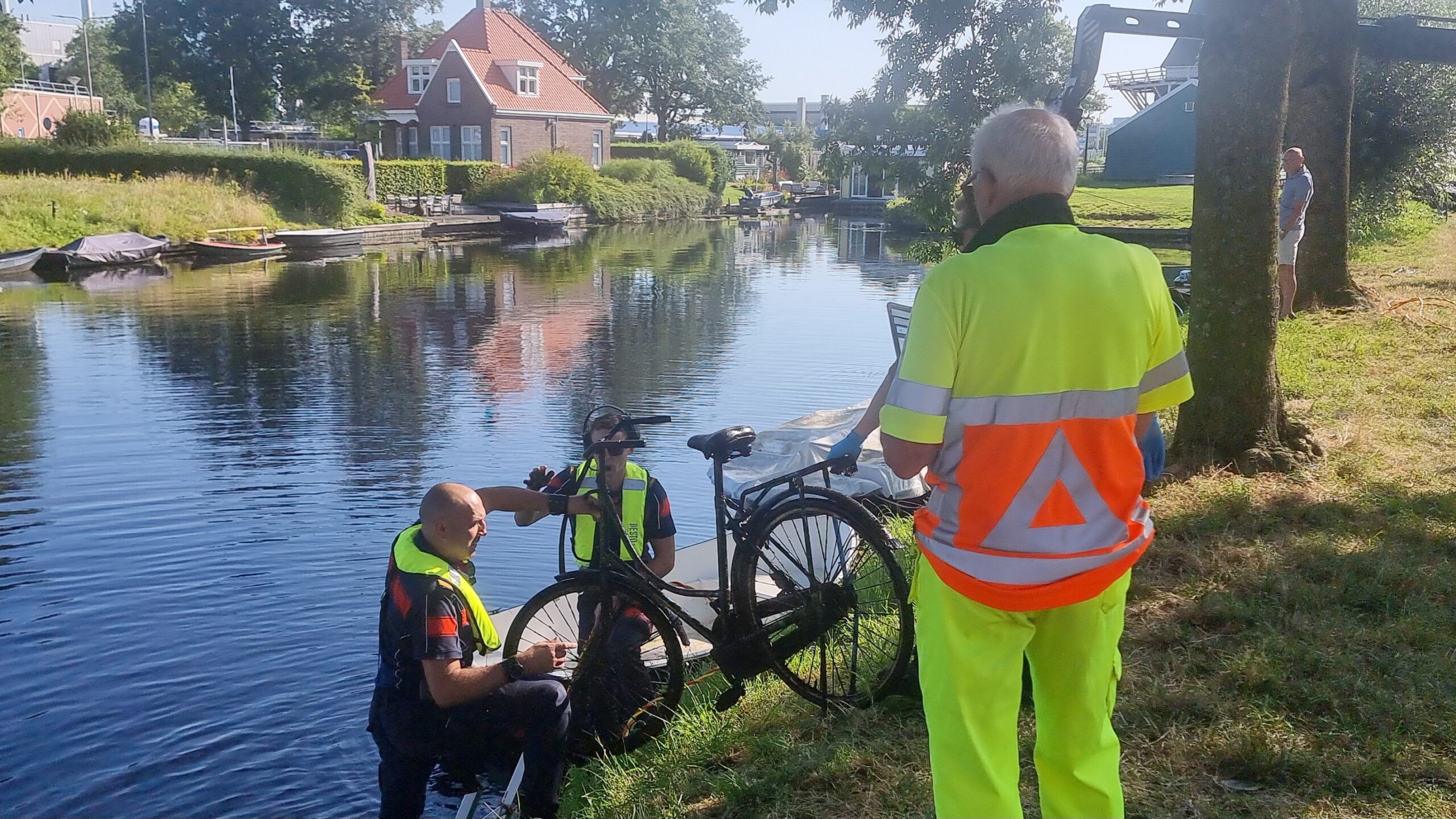 Rond tien uur liggen de eerste boten inmiddels op de kant. Maar niet alleen boten, ook oude fietsen worden door de duikers van de brandweer uit het water getrokken. Dit gaat met de hand, terwijl de bootjes worden door de brandweerduikers aan een ketting bevestigd. Een kraan takelt ze vervolgens omhoog naar de wal.