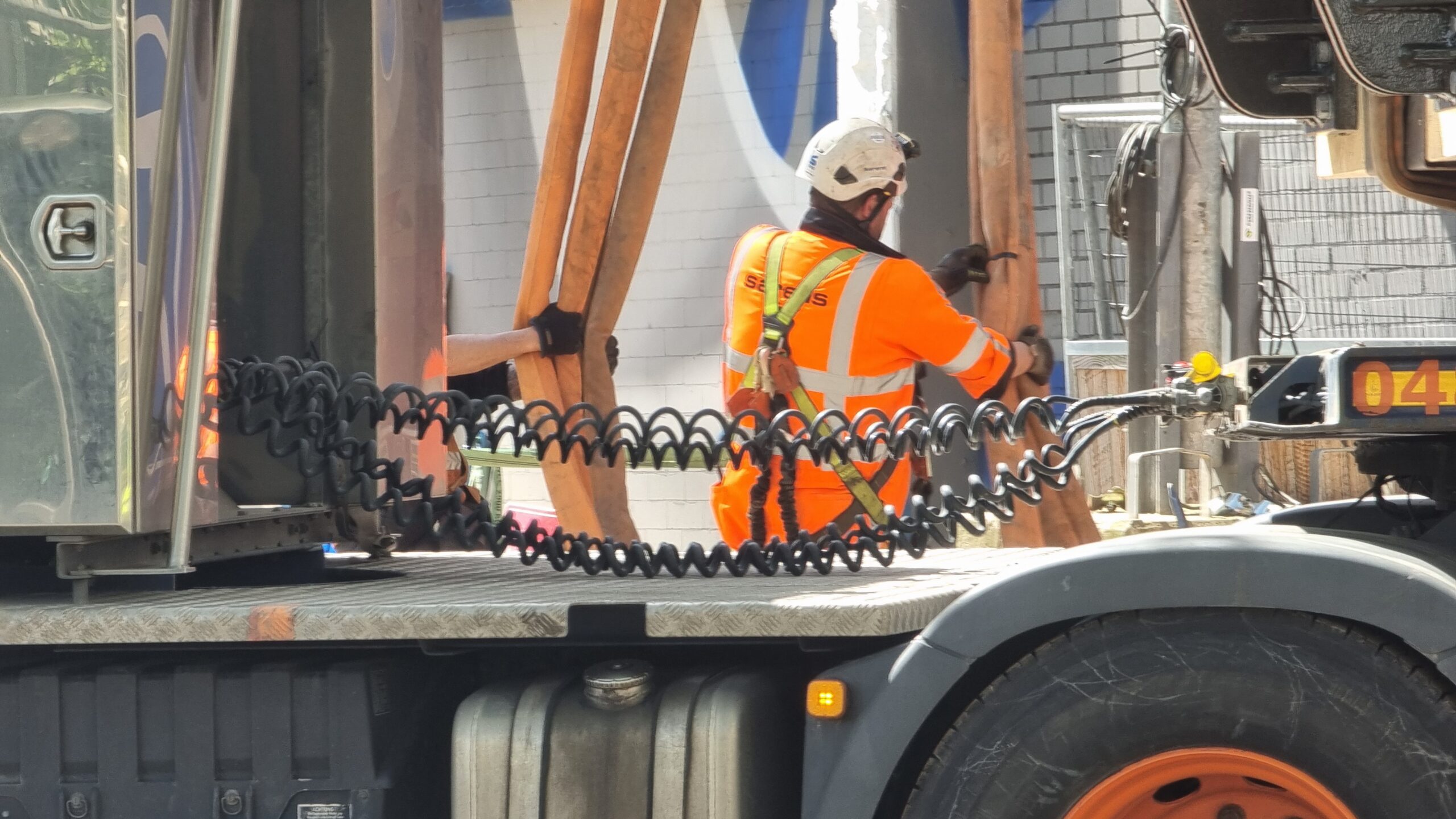 Aniek Montoya-Poelhekke, bouwmanager bij ProRail, vertelde rond twaalf uur over het project: “We zijn nu nog bezig met het plaatsen van de tijdelijke ondersteuningen. En als die zometeen staan, dan kunnen de liggerdelen worden ingehesen. Ik verwacht dat dat zo rond half twee zal zijn.” Het werd uiteindelijk vier uur ’s middags. “We hebben een kleine tegenvaller gehad met het plaatsen van de tijdelijke ondersteuningen. Er is een hoogwerker defect gegaan waardoor we nu iets uitlopen’, aldus de manager. Ook zou de wind parten hebben gespeeld.