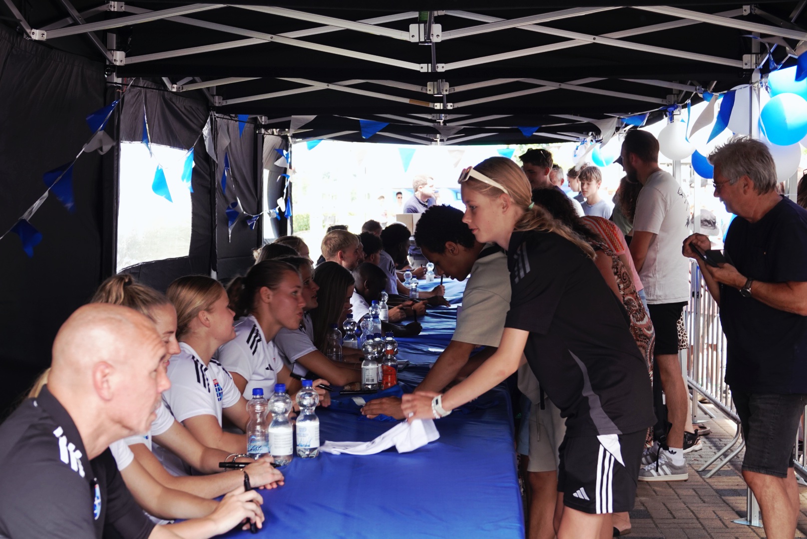 Buiten regende het handtekeningen. Spelers en speelsters namen uitgebreid de tijd voor hun fans, die in lange rijen stonden voor een handtekening of een selfie. Het slotstuk van de middag was de spelerspresentatie, waarbij stadionspeaker Marco ten Kate het voltallige team voor het nieuwe seizoen voorstelde aan een kolkende hoofdtribune.