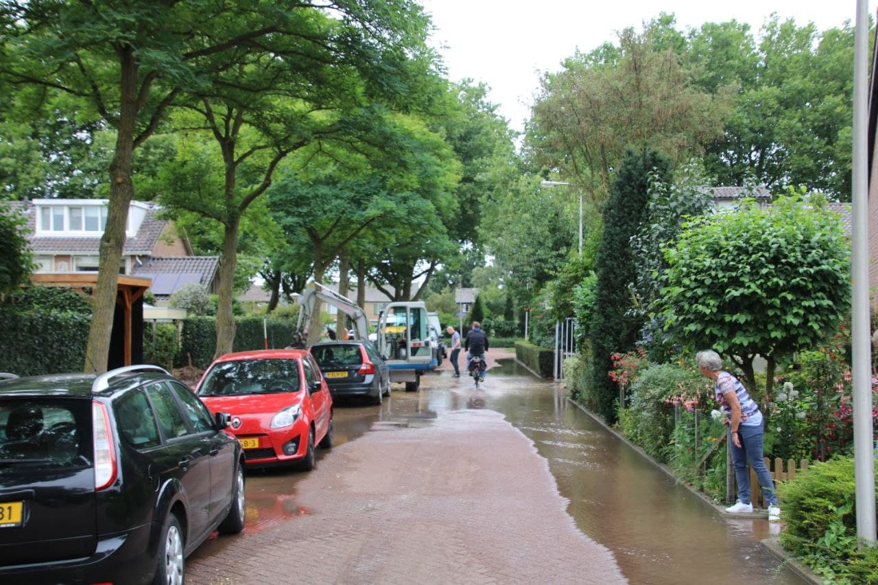Tijdens graafwerkzaamheden in de straat is een waterleiding geraakt. Het water zette in korte tijd de straat blank. Diverse schuren en garages kregen water binnen. Hoe groot de schade is, is onbekend.