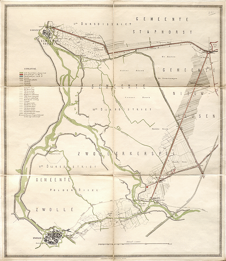 Het huidige werkgebied van het WDODelta strekt zich uit van Deventer tot Assen. Tijdens een fusie in 2016 is het waterschap Groot Salland (in Overijssel) samengevoegd met waterschap Reest en Wieden in Drenthe. Groot Salland was al een samenvoeging van kleinere water- en zuiveringsschappen, rechtsvoorgangers noemen we dat. In totaal kent het Waterschap Drents Overijsselse Delta maar liefst 158 rechtsvoorgangers, waarvan helaas niet alle archieven bewaard zijn gebleven. Collectie Overijssel beheert op dit moment zo’n 138 strekkende meter archief van het voormalige waterschap Groot Salland en zijn rechtsvoorgangers. Op deze kaart zie je welk werkgebied dat voor hen grofweg is.