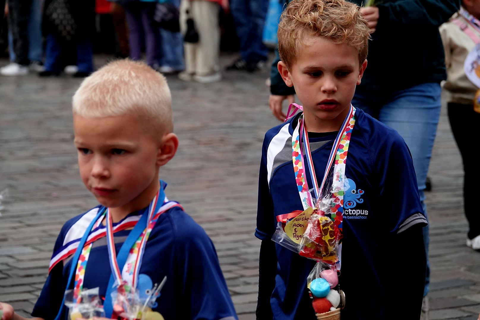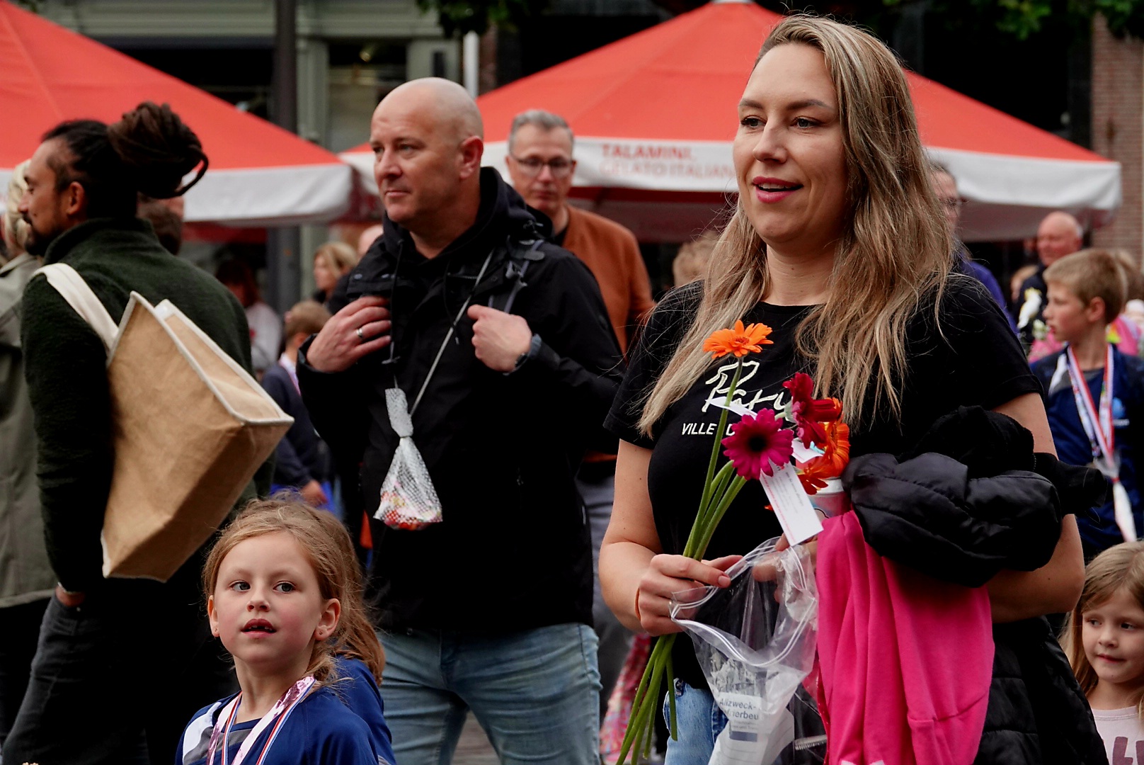 De laatste kilometers werden met luid applaus, bloemen én snoep beloond. Overal langs de route stonden familieleden, opa’s, oma’s en buren te juichen. Vooral op het moment dat de jonge wandelaars hun bekenden in de menigte spotten, barstte het feestgedruis los.