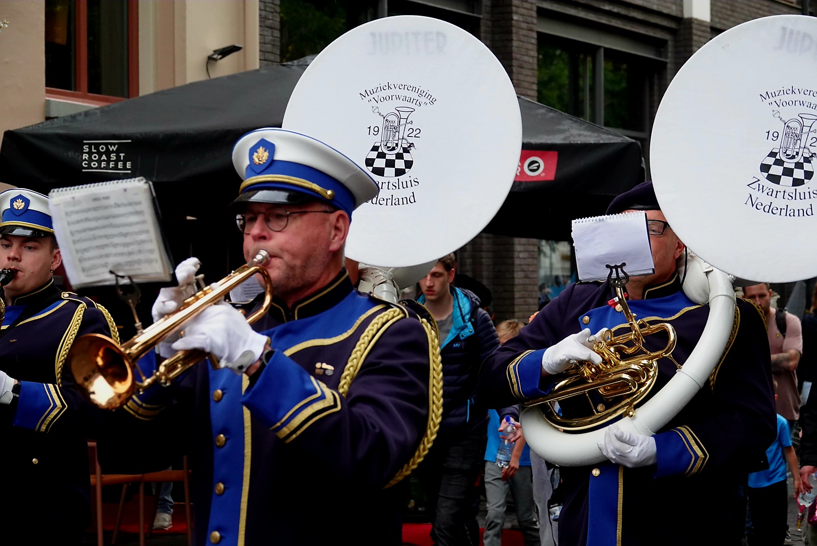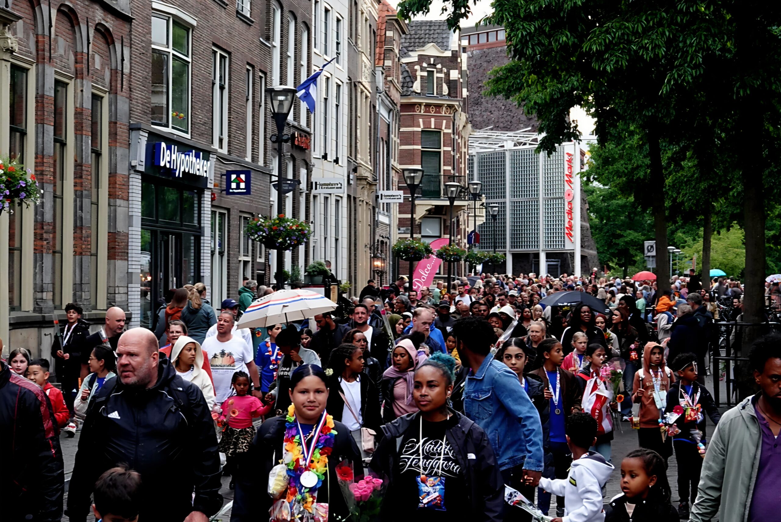 Op meerdere plekken in de stad wachtten drumbands de wandelaars op met opzwepende beats. Sommige kinderen moesten even hun oren beschermen, anderen lieten zich juist meeslepen en dansten spontaan tussen de muzikanten – vaak met hun jonge vaders vrolijk meedeinend.