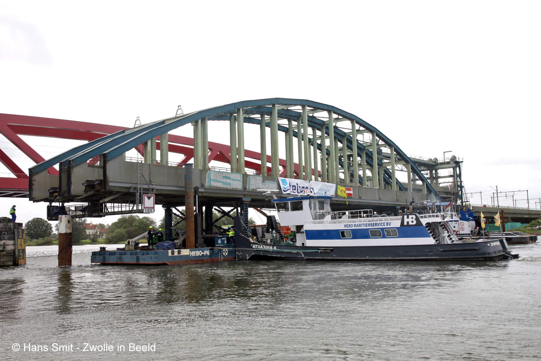 Het op de wal opgebouwde middelste deel van de brug werd op zaterdag 1 mei 2010 op pontons naar de plek gevaren. Een dag later werd de 135 meter lange en 2.500 ton wegende overspanning, met kabels omhoog gehesen en vastgemaakt aan de brughoofden. Bijna een jaar later, op 24 en 25 april (paasweekend), werd de brug aangesloten op het spoor aan de kant van Hattem. Een dag later reed de eerste trein vanuit Amersfoort over de brug. Op 12 en 13 juni (pinksterweekend) werd de Zwolle-kant aangesloten. Waarna op 14 juni 2020 ook het treinverkeer vanaf Zwolle over de brug kon.
