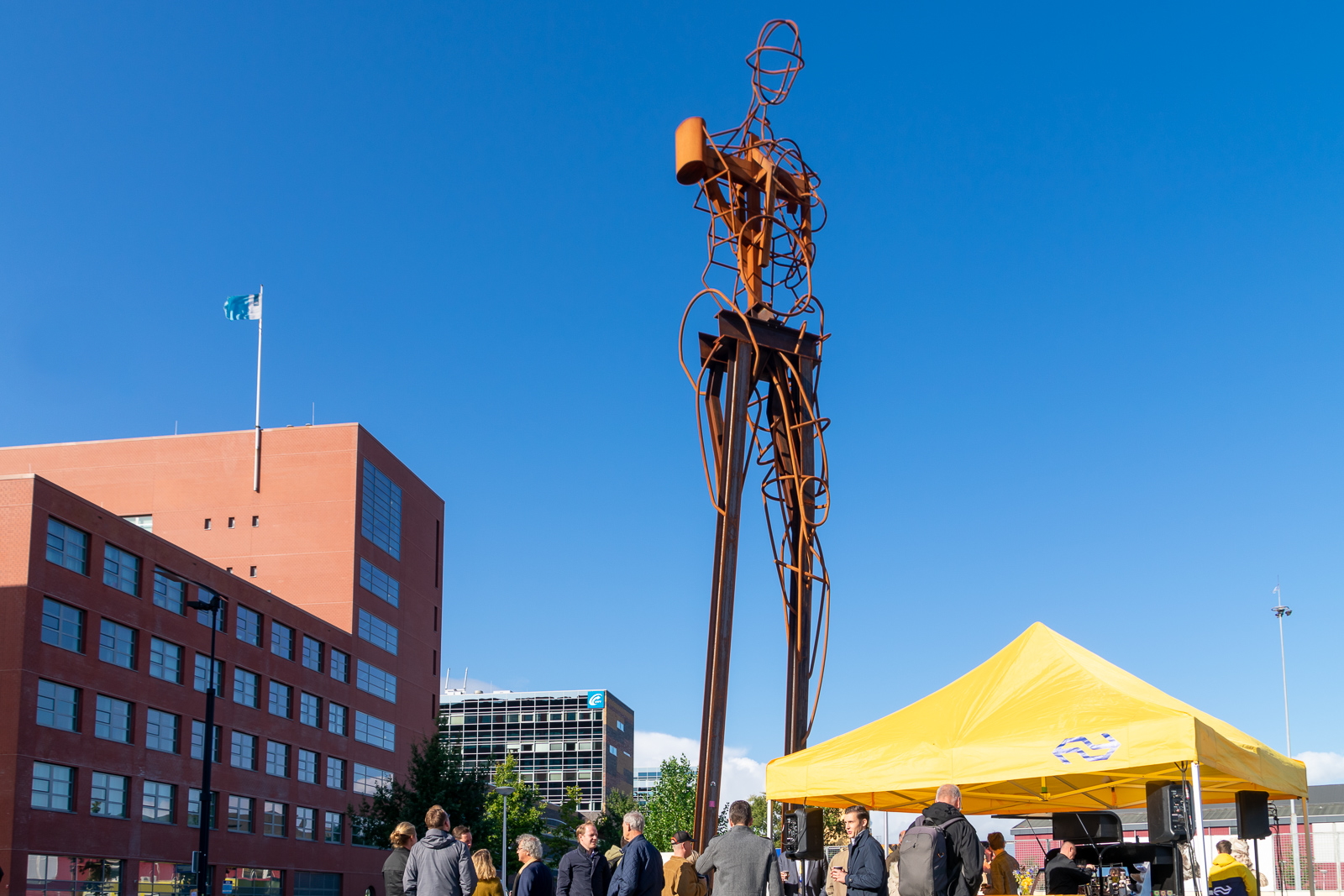 “Gavin is weer op reis en dat is ook de bedoeling”, vertelt kunstenaar Ronald A. Westerhuis die het kunstwerk beheert in de Lowlands collectie. De ‘reus’ is in Zwolle gemaakt door de Amerikaanse kunstenaar Jason Myers in het atelier van Ronald A. Westerhuis en met hulp van Ronald’s medewerkers. Een zogenaamd Artist in Residence project van Westerhuis. “Gavin heeft twee jaar op Lowlands gestaan. En het kan ook maar zo dat hij daar weer heen gaat.” vertelt de kunstenaar die ieder jaar voor Lowlands een werk produceert.